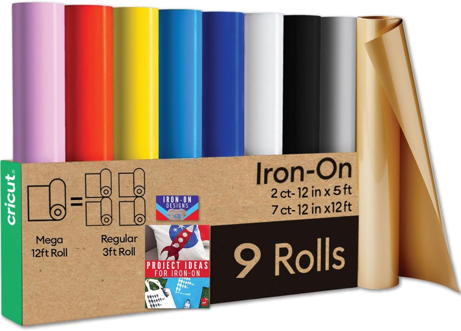 Cricut Heat Transfer Vinyl Rolls Bundle – 12ft Rainbow...