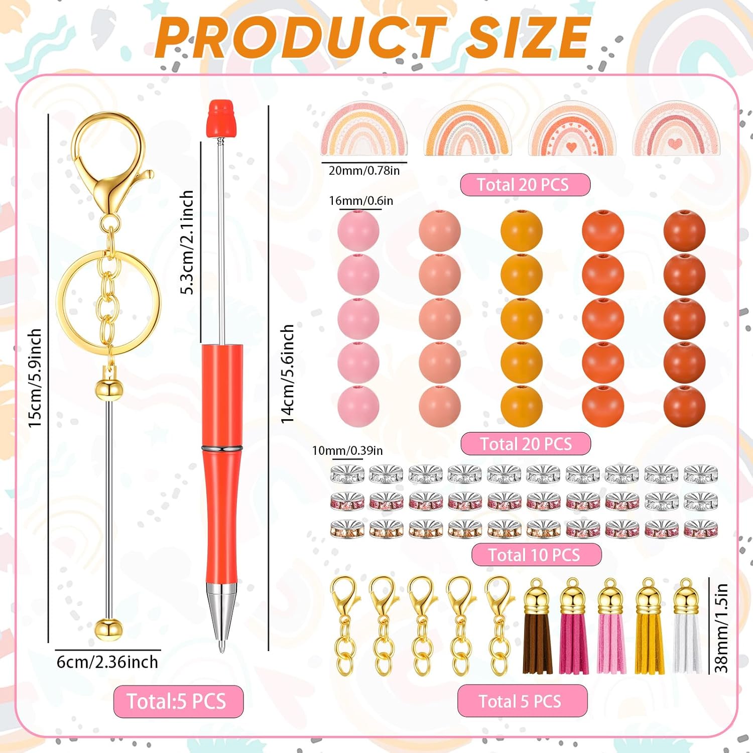 Comprehensive Crafting Package: the DIY Making Kit includes 10 sets ready for all your crafting process; including 5 pcs beaded pens with different themes, 5 pcs beaded keychains; Each set encompasses a beads for beadable pens, keychain, pendant, lobster clasp, and ample beads, encouraging you to unleash your creativity in crafting exclusive