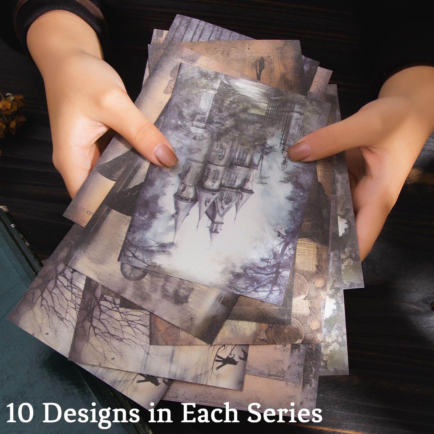 180Pcs Dark Fantasy Scrapbook Paper, Vintage Gothic Journal Ephemera Pack, Junk Journal Supplies for Scrapbooking Kit, with Glue Tape