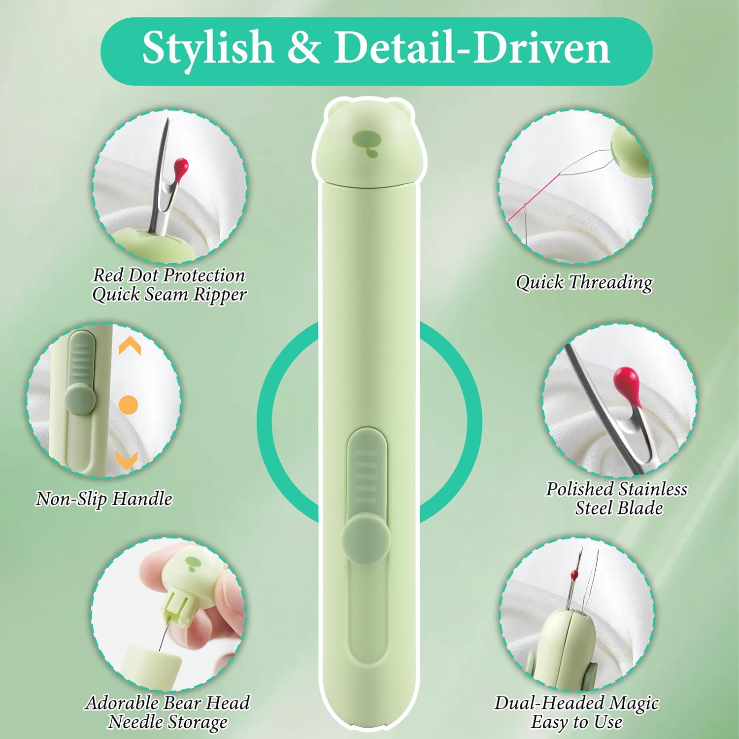 3-in-1 Double-ended Design: Innovative 3-in-1 seam ripper tool & stringer simplifies hand sewing—The double-ended design handles the stringer for removing hand-sewing needle threaders. It also comes with a storage needle box, ideal for quilting and repairing
