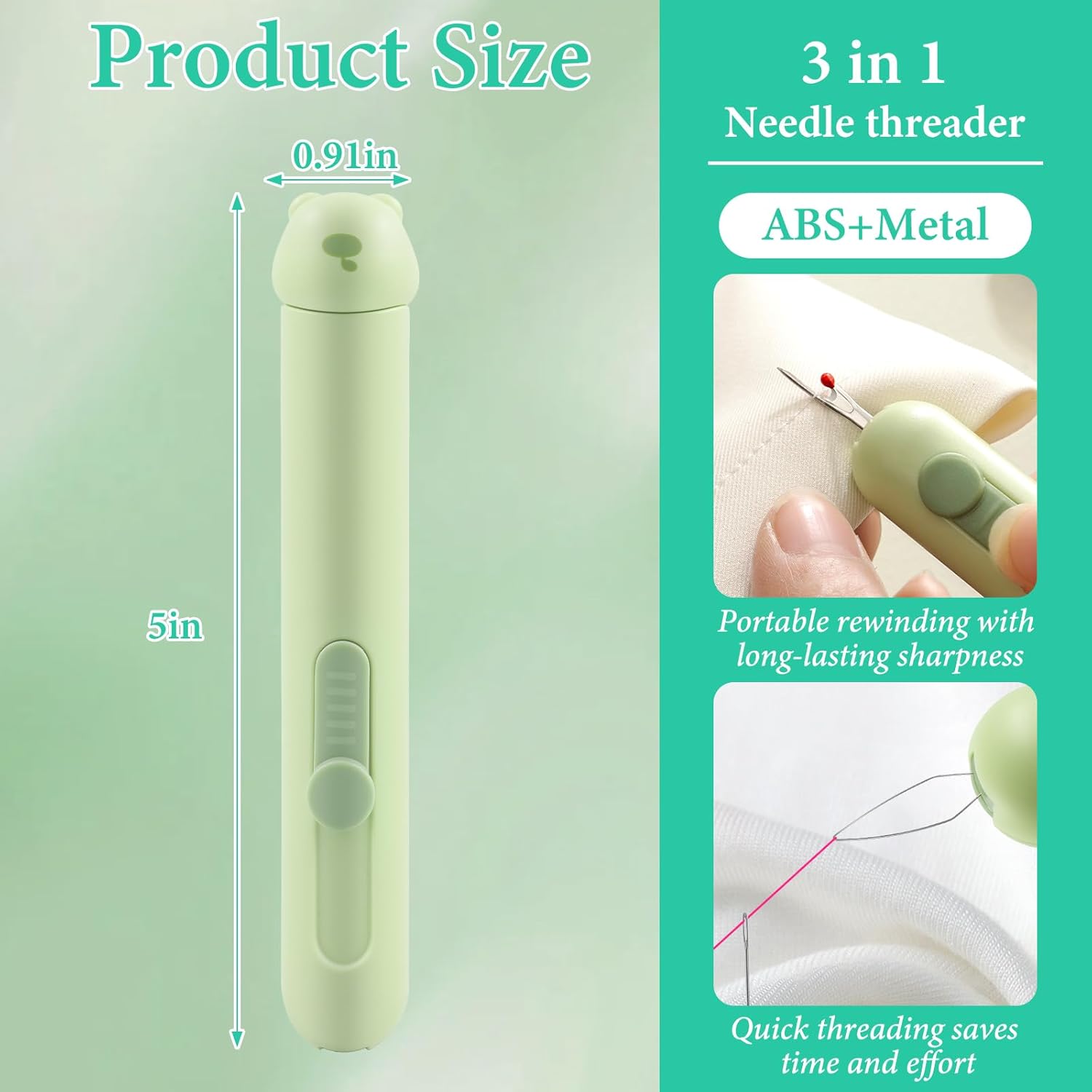Carefully Screened High-Quality Materials: This automatic needle threader for hand sewing is carefully crafted with high-quality ABS and stainless steel materials. Its sharp blades maintain stability during use and improve sewing efficiency. Its compact size makes it easy to carry