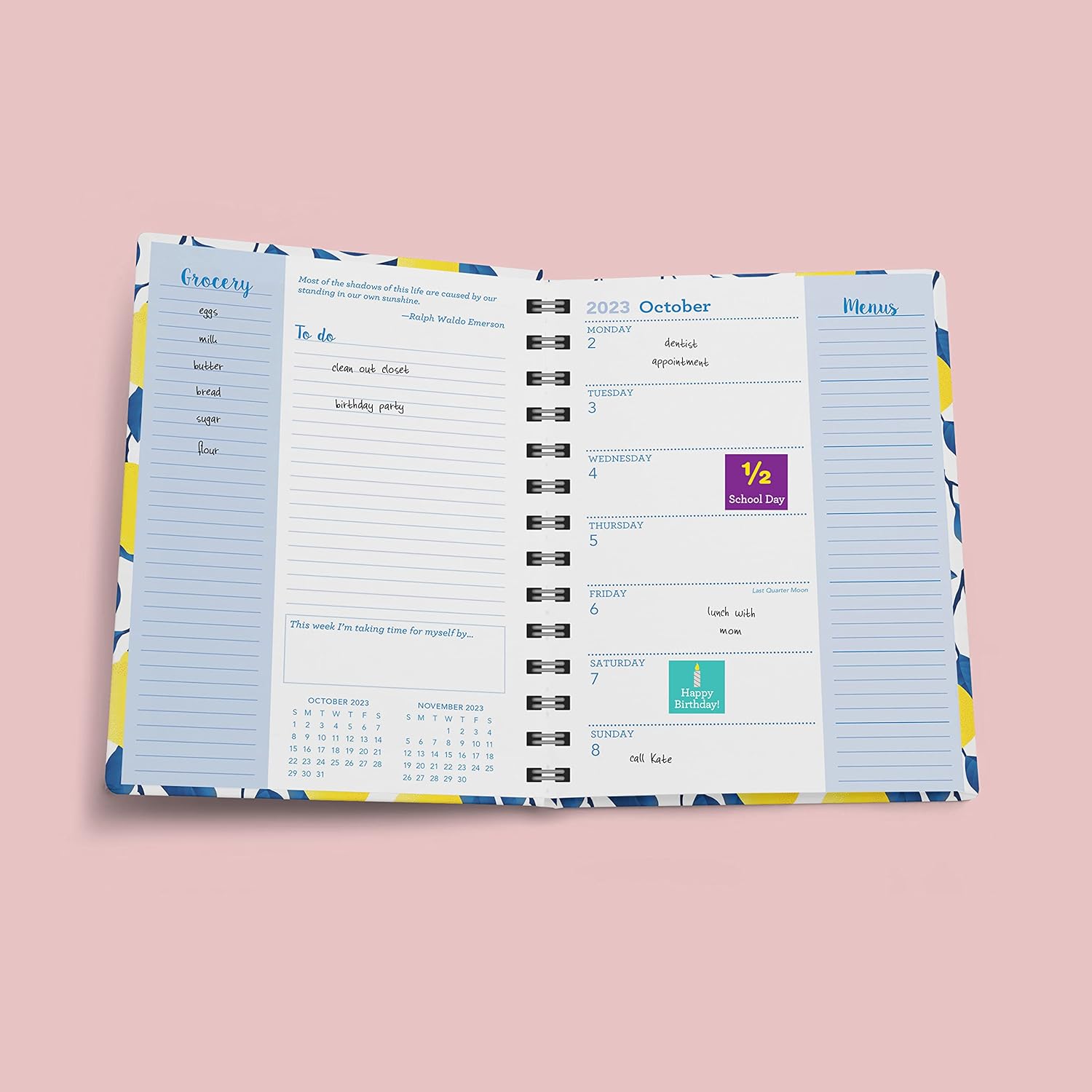 I work from home with two young kids and would lose my head if it wasn’t attached. This planner helps keep me organized and on track with everything from with projects to grocery shopping. Also, the stickers are cute. This is a good quality planner as well, not flimsy plastic garbage. I’ll buy one every year.