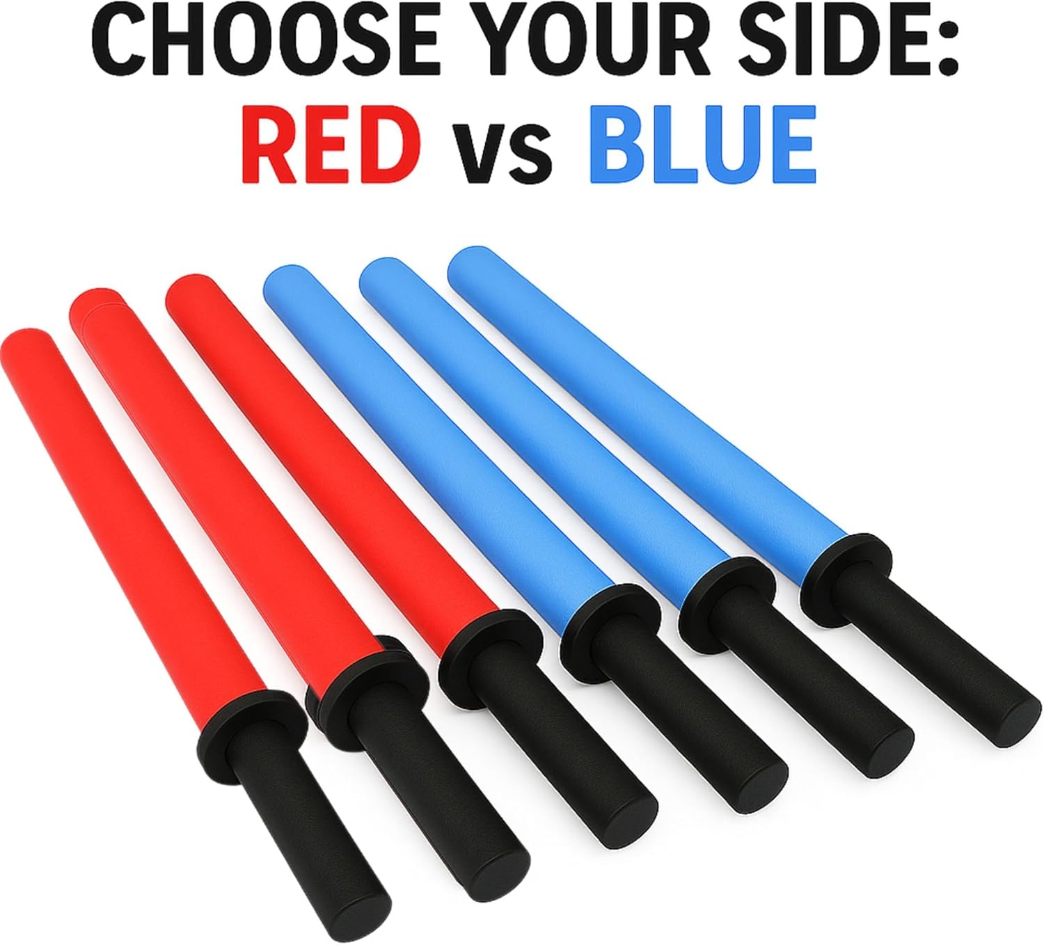 TEAM RED VS TEAM BLUE: Includes 3 bold red and 3 electric blue foam swords – great for team games, group activities, and friendly pretend-play battles.