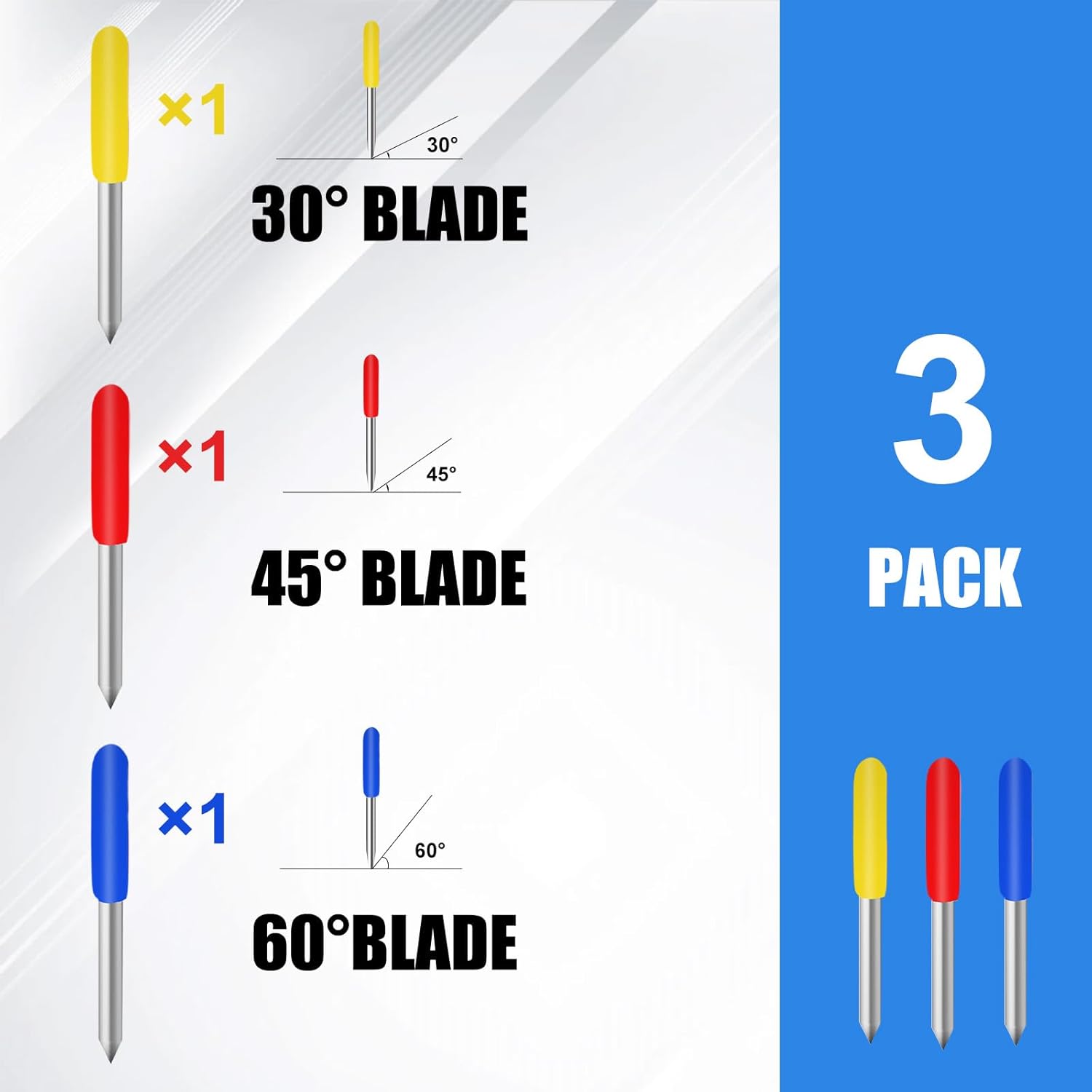 Compatibility and Usage with blades: These premium blades come in different angles (30°, 45°, 60°) to meet various crafting needs.,are compatible with Cricut Maker 3 machines. They are suitable for cutting a range of materials from thin to medium thickness, such as paper, vinyl, fabric, PVC, adhesive paper, glitter paper, cardstock, poster board, adhesive foil, vellum, and lightweight wood.