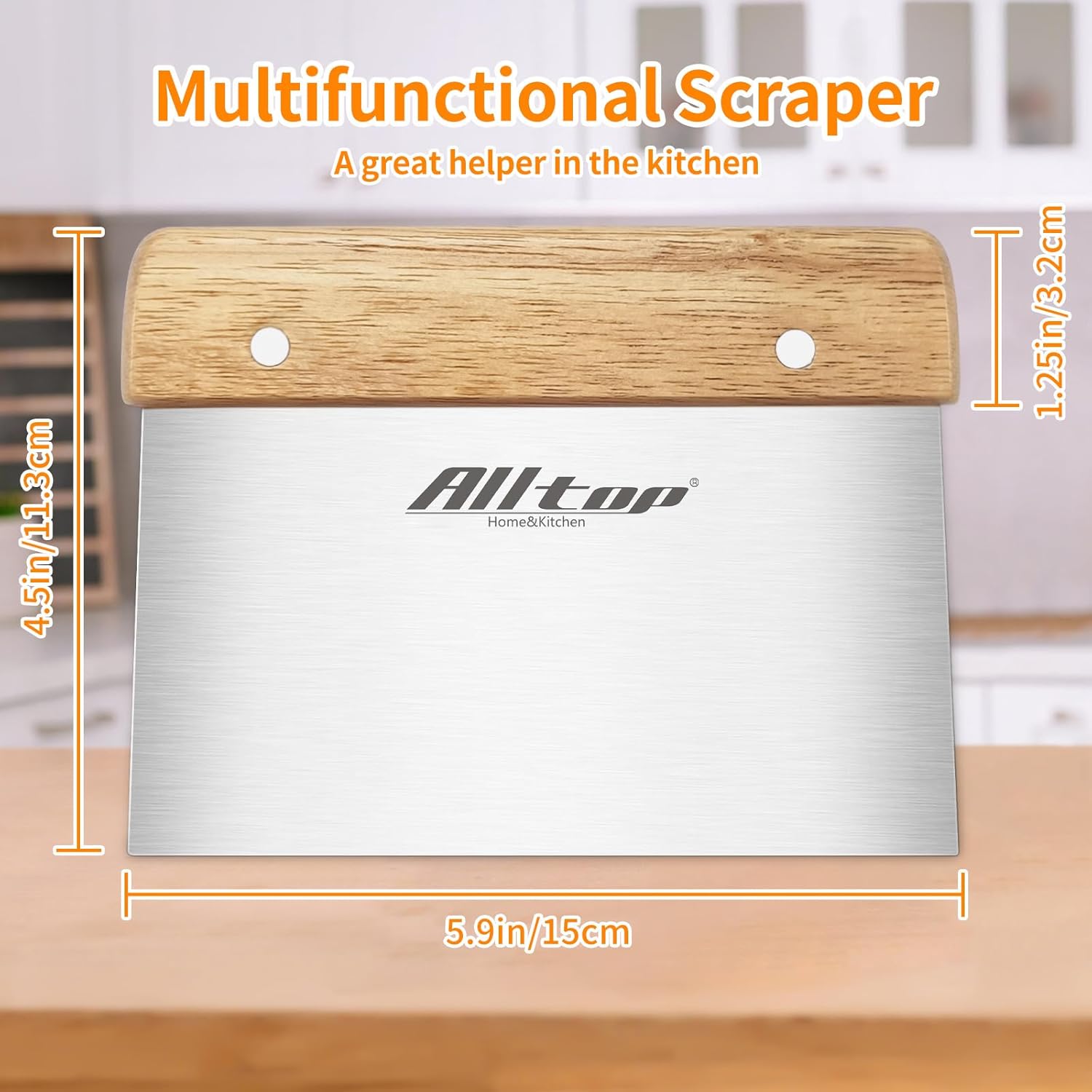 ALLTOP Dough Cutter – Premium Stainless Steel Food Scraper for Bread and Pastry – Bench Scraper with Ergonomic Wooden Handle – Multipurpose Kitchen Tool
