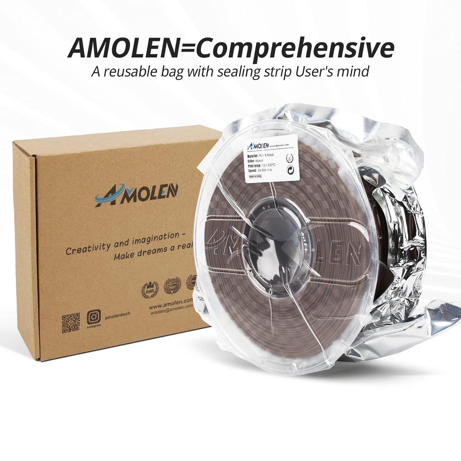 Wood -Like Feel: Amolen printer filament, the luxurious feel of wood with special surface that mimics the natural and unique texture of Wood,wood filament give you more experiece of nature and home decor or natural style