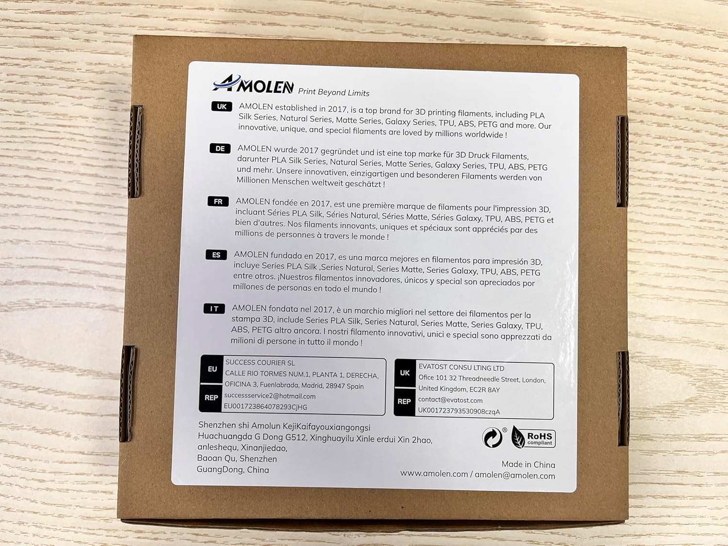 Some of the worst wood PLA I have printed with (despite the premium price tag). I purchased the tigerwood PLA because I though the color gradient would make it more wood-like than other filament. Unfortunately, this spool prints so poorly I wasn’t able to assess that aspect of the print. The bed and layer adhesion are horrible, and it clogs easily on both .4 and .4mm nozzles. The filament was wet and brittle on receipt and remained brittle after drying.After spending hours and a 5th of the roll trying to tune my profile to print it better, I was still struggling with uneven extrusion. After breaking out a micrometer, it turns out my issues were because the filament is not dimensionaly accurate at all. While the listing boasts +/-0.02mm accuracy, in just 1 meter of filament, I got measurements ranging from 1.72mm up to 1.88… which is only 0.16mm and explains the uneven extrusion! While I applaud Amolen for being one of the only bicolor wood filament manufacturers out there, between the poor QA, brittleness, and lac of dimensional accuracy, I can’t recommend this to anyone.