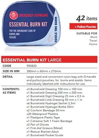 Compact and Convenient: The Standard size Essential Burn Kit is packed in a durable nylon bag with practical carrying options, making it perfect for immediate burn care at home, during travel, or in the workplace.