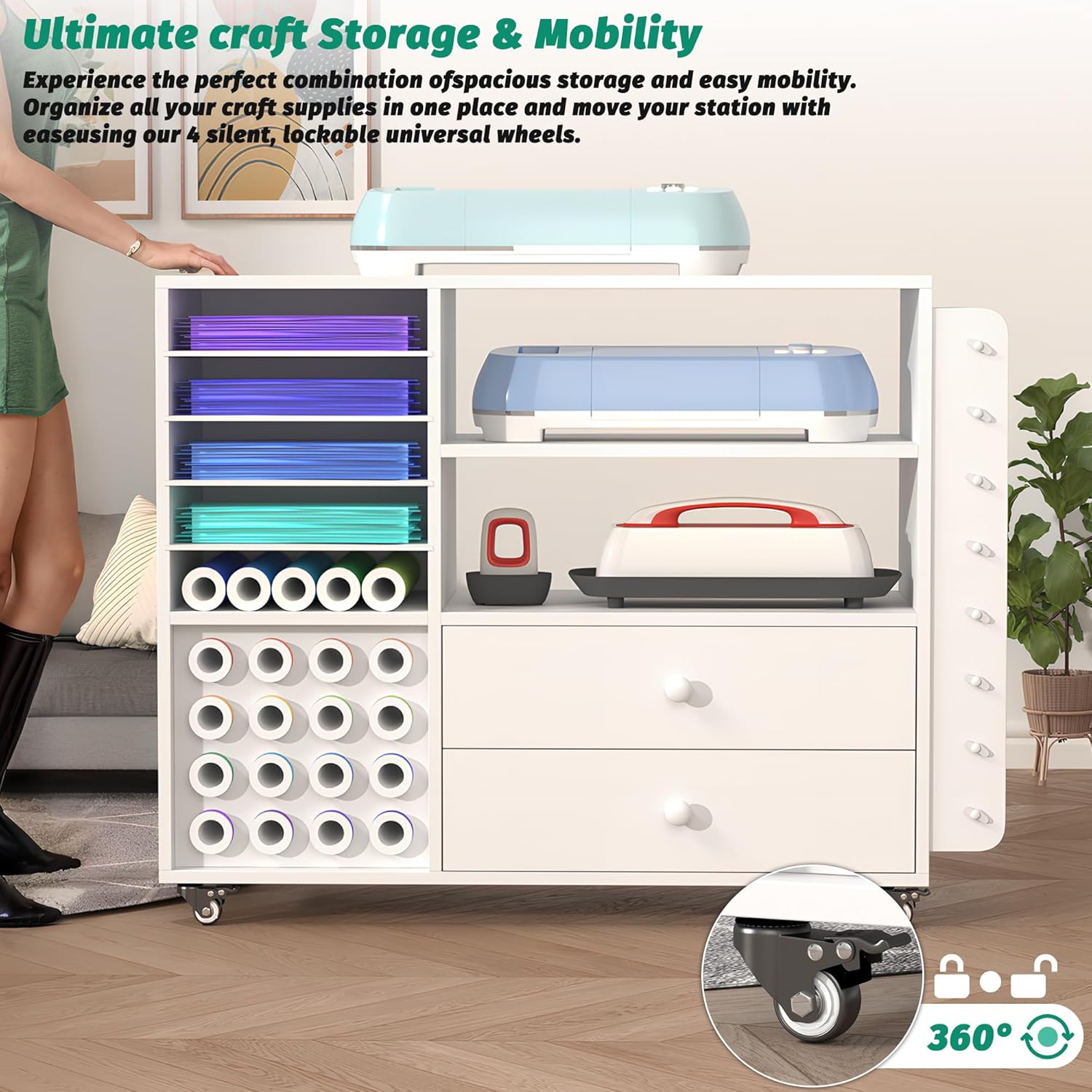 [Perfect Craft Cart] Our CXQ craft cart is meticulously designed to provide ample storage for multiple cutting machines, vinyl rolls, vinyl sheets, and a variety of tools. It features two large drawers, offering abundant space for all your crafting essentials. This cart is an essential addition to any craft room, combining practicality with elegance, ensuring your workspace is both organized and inspiring.