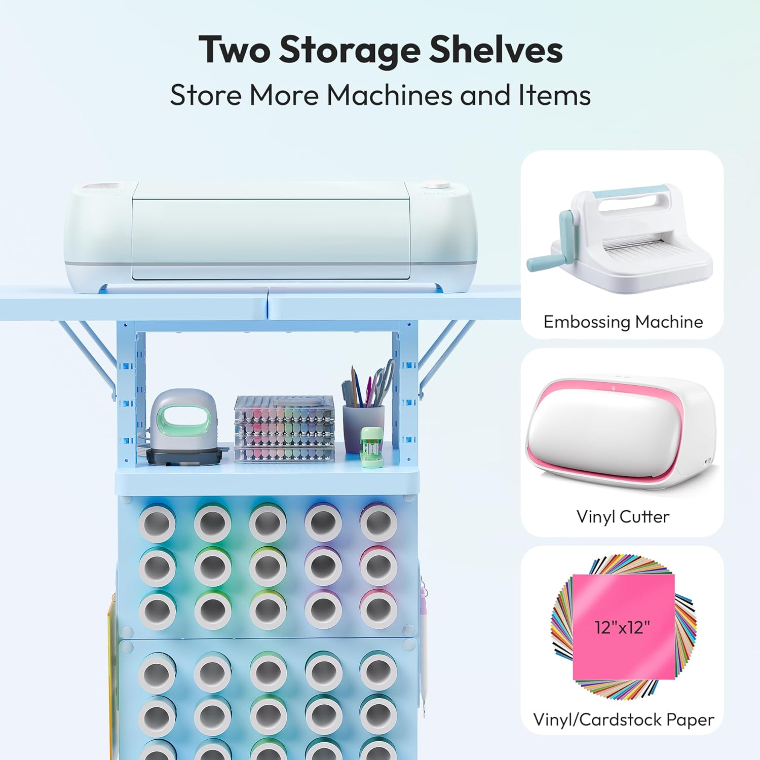 Craft Storage Cart Compatible with Cricut Machine, Rolling Craft Stand Shelf Table Desk Organizer with 45 Vinyl Roll Holders, Pegboard, Accessories Holder, Craft Room Organization