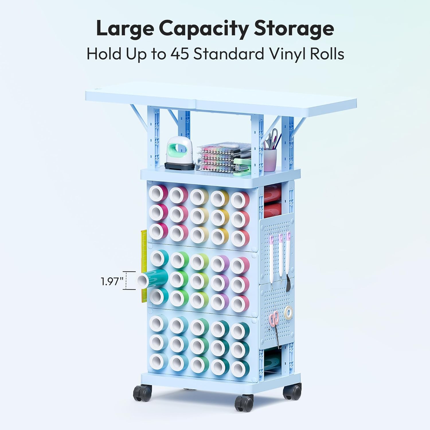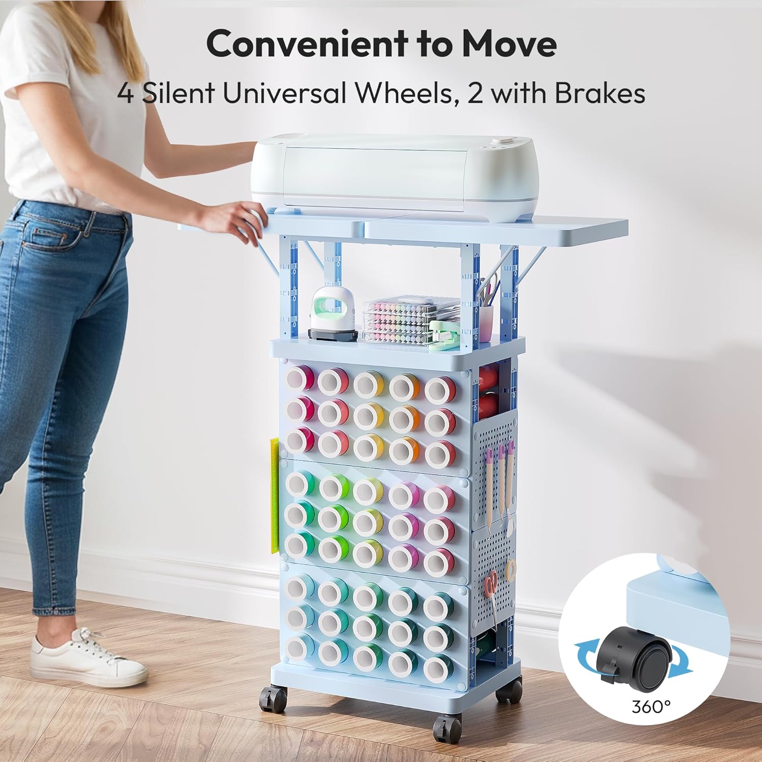 Craft Storage Cart Compatible with Cricut Machine, Rolling Craft Stand Shelf Table Desk Organizer with 45 Vinyl Roll Holders, Pegboard, Accessories Holder, Craft Room Organization