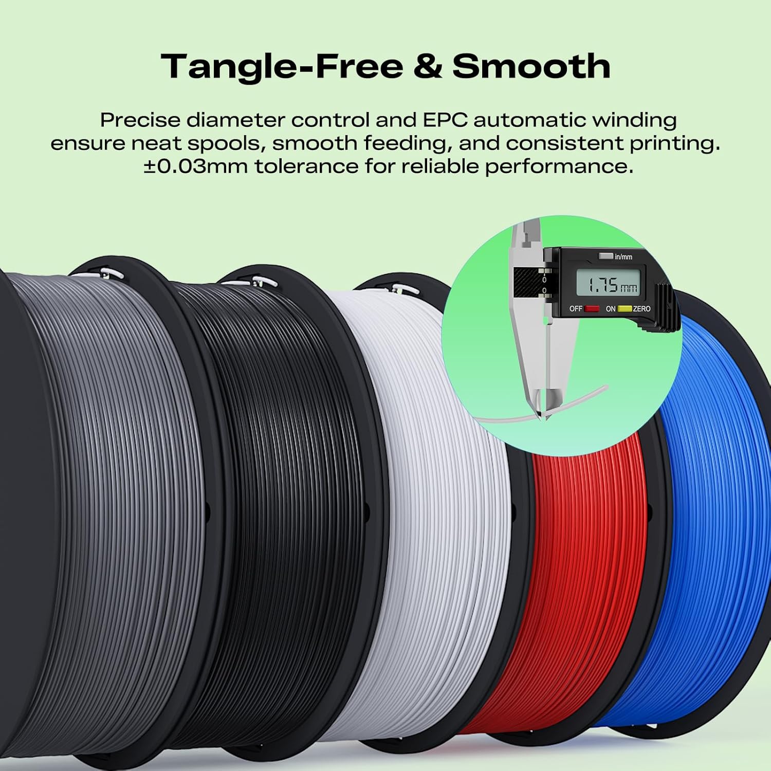 Smooth & Stable Printing: Tangle-free and low-shrink PLA ensures smooth feeding and warp-free printing, even for large models—delivering high precision and reliable results (Use recommended temps)