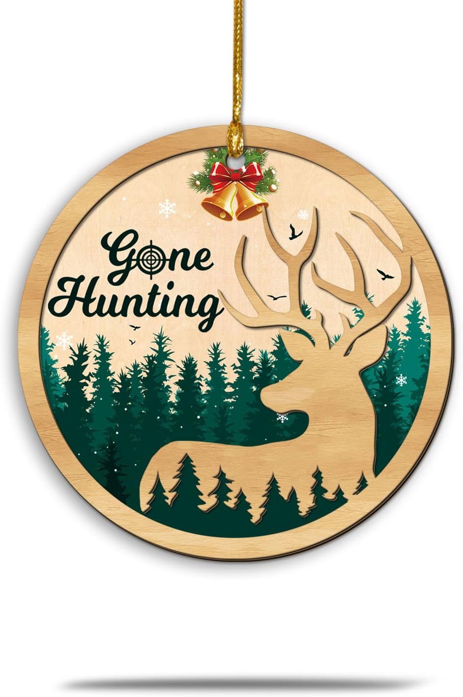Gone Hunting Deer Christmas Ornament – Forest Deer Ornament for Men, Women, Husband, Boyfriend – Hunter Gift, Green Tree Holiday Decor – Rustic Wooden Layered Christmas Ornament 2025