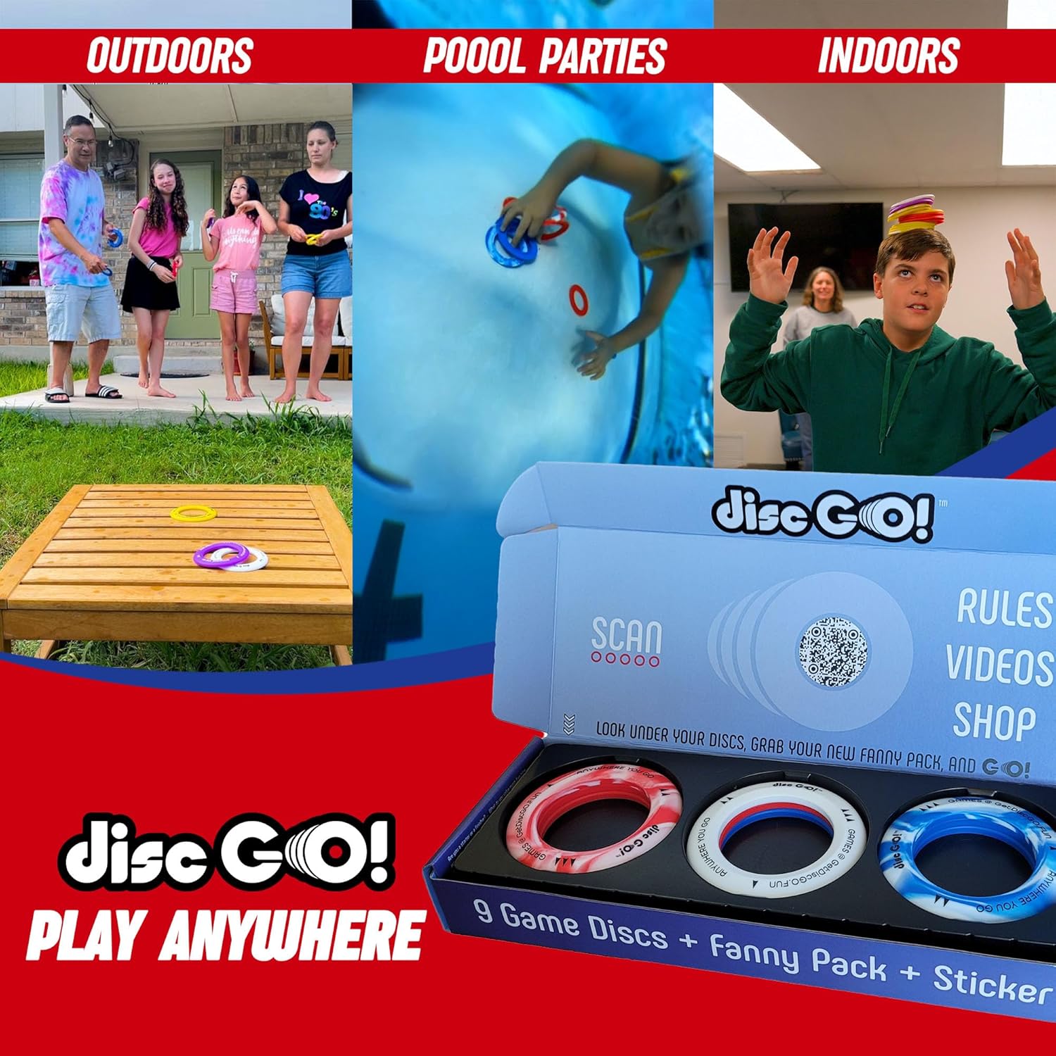Versatile Gameplay Anywhere: Whether at the park, beach, backyard, or indoors, Disc GO! adapts to any environment. This silicone frisbee is perfect for all skill levels, from casual fun to flying disc sports equipment. Play with frisbee rings for kids, challenge yourself with a professional frisbee game for adults, or enjoy the unique feel of a soft frisbee disc for kids. A great easy disc frisbee, flying rings for kids, or frisbee with hole in center for endless fun.