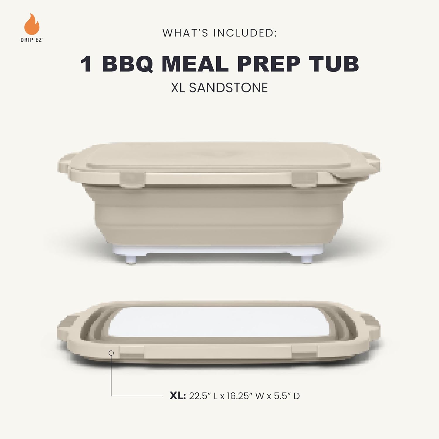 Drip EZ Collapsible BBQ Prep Tub – For Meal Prep, Marinating, Food Storage – Includes Cutting Board & Locking Lid – (1) XL – Sandstone