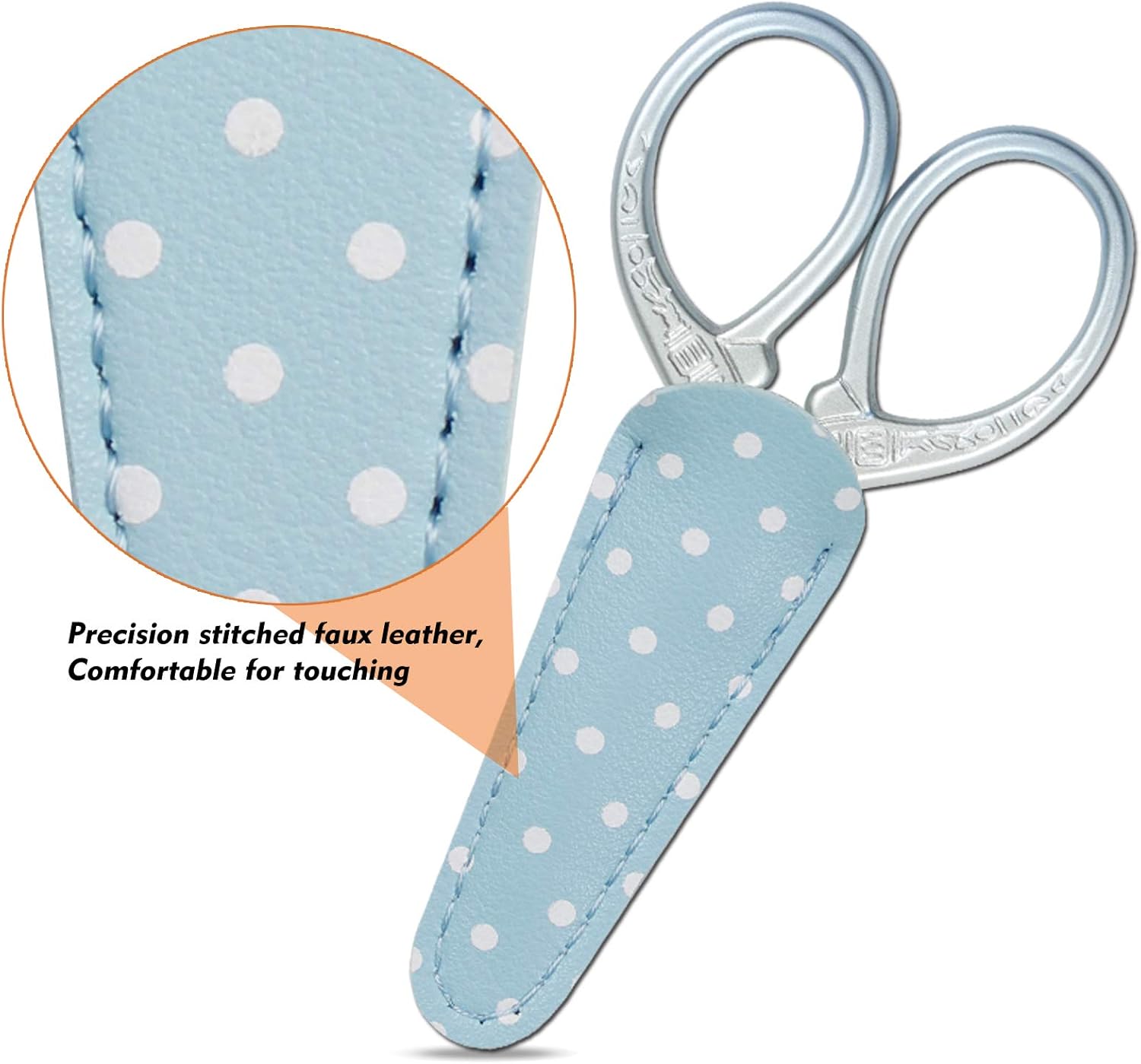 Hisuper sewing embroidery sewing scissors with leather scissors cover, embroidery scissors sewing scissors snipping threads shaping scissors small for needlework, cross stitch,manual sewing handicraft DIY tool