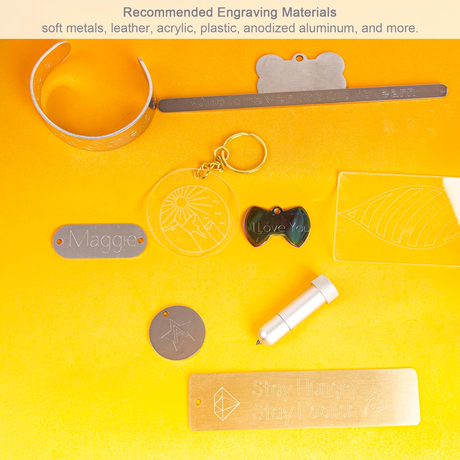 【Create Personalized, Professional, Decorative Keepsakes】 OVAN QuickSwitch engraving tool creates wow-worthy moments with this pro-level decorative effect. Turn any project into a keepsake with intricately engraved designs. Custom engraved jewelry of all types, of course, tags and labels, keychains, bracelets, dog tags, gifts, plaques, art… or personalize them for stylish luggage tags, and there are so many possibilities for other projects.