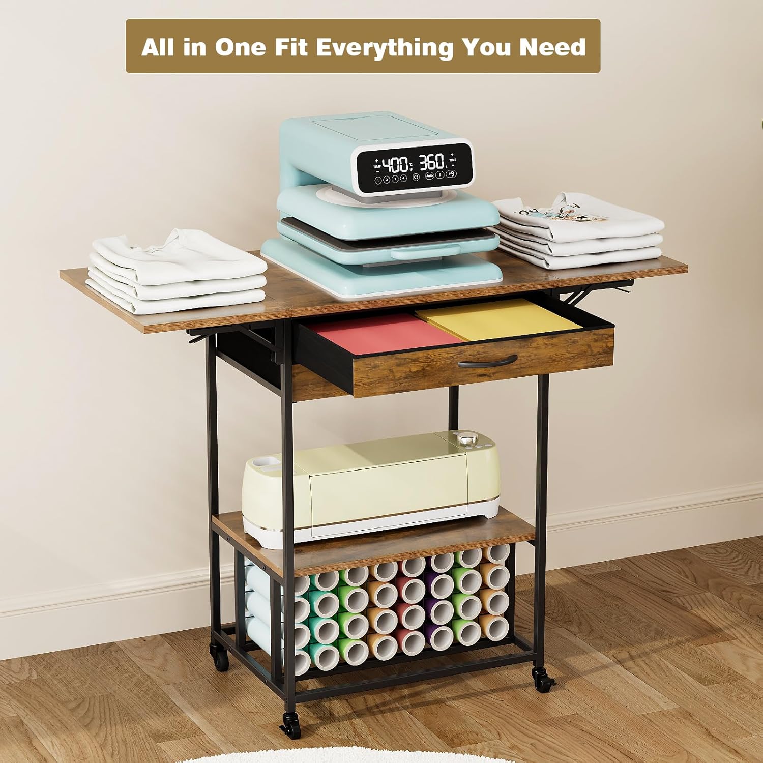 Large Heat Press Table Craft Cart with Vinyl Roll Storage Home DIY Station
