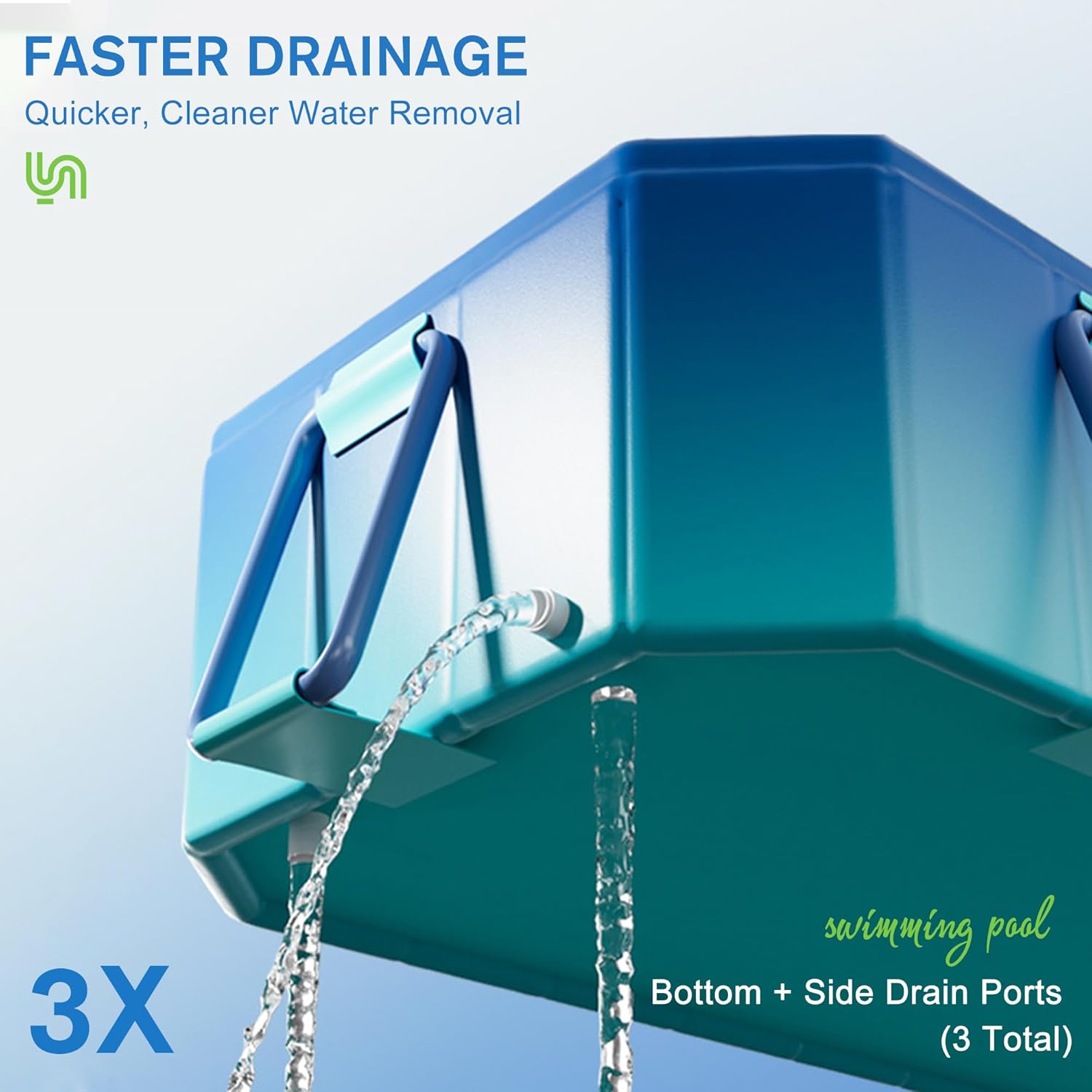 Fast Drainage: Designed for convenience, the pool features three drain outlets (bottom and sides) for rapid water release. Clean up is quick and easy, and when you’re done, just fold it flat for compact storage—no need to disassemble