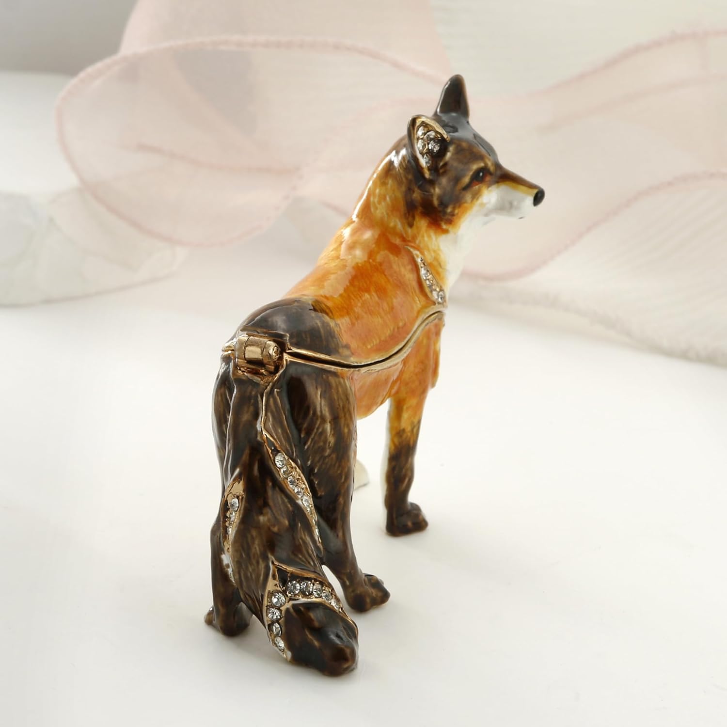 Quality: The fox trinket box figurine was made by zinc alloy and rhinestone