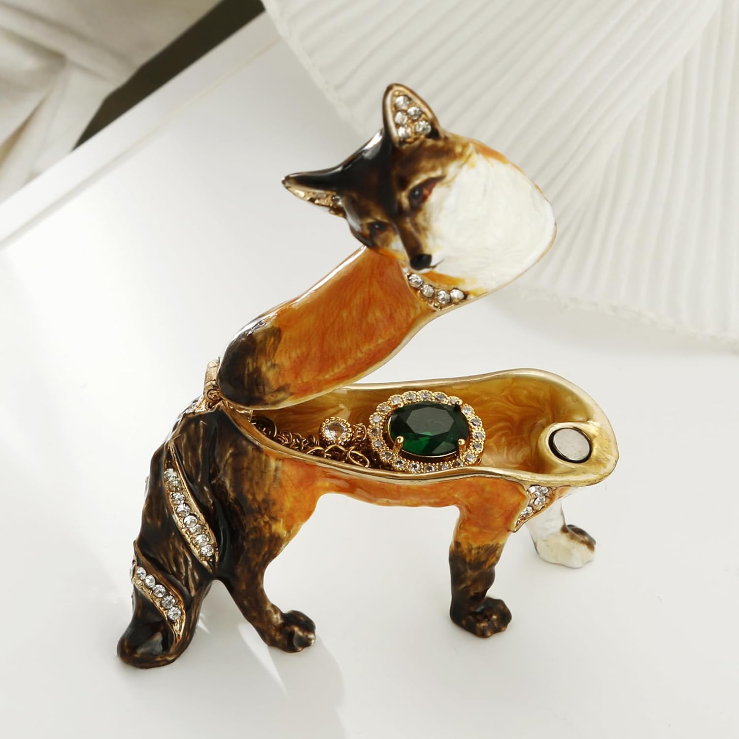 Quality Materials: The fox trinket box figurine are made by quality zinc alloy metal and rhinestone, lead-free, cadmium-free and nickel-free