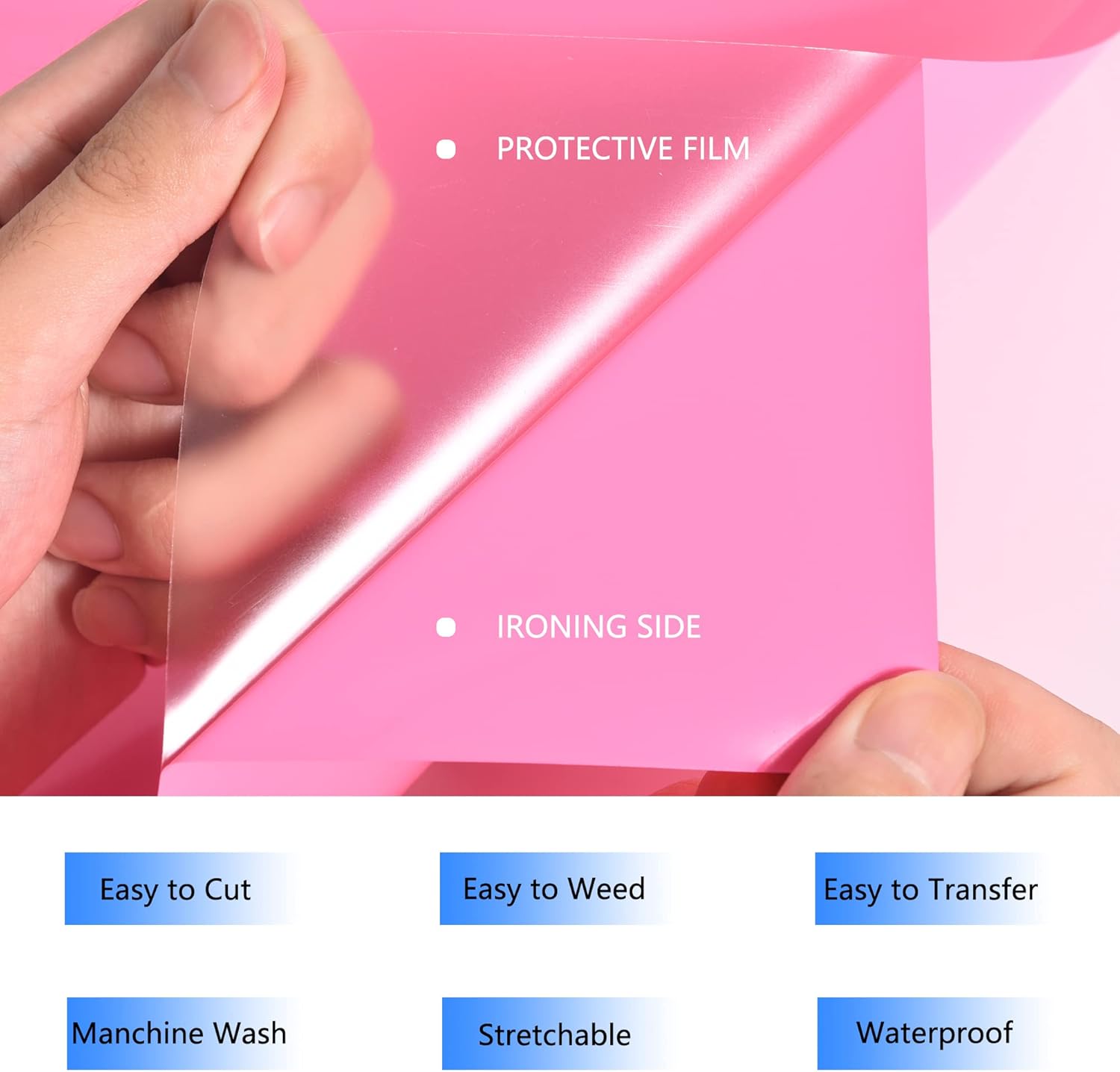 ✂ EASY TO CUT & WEED & TRANSFER ✂ Our premium quality heat transfer vinyl will save your time which you may waste on each image or letter, because you can cut and weed easily through the designs just right.The iron on vinyl is sensitive to temperature and pressure, which can be heat transferred on any t-shirt easily.