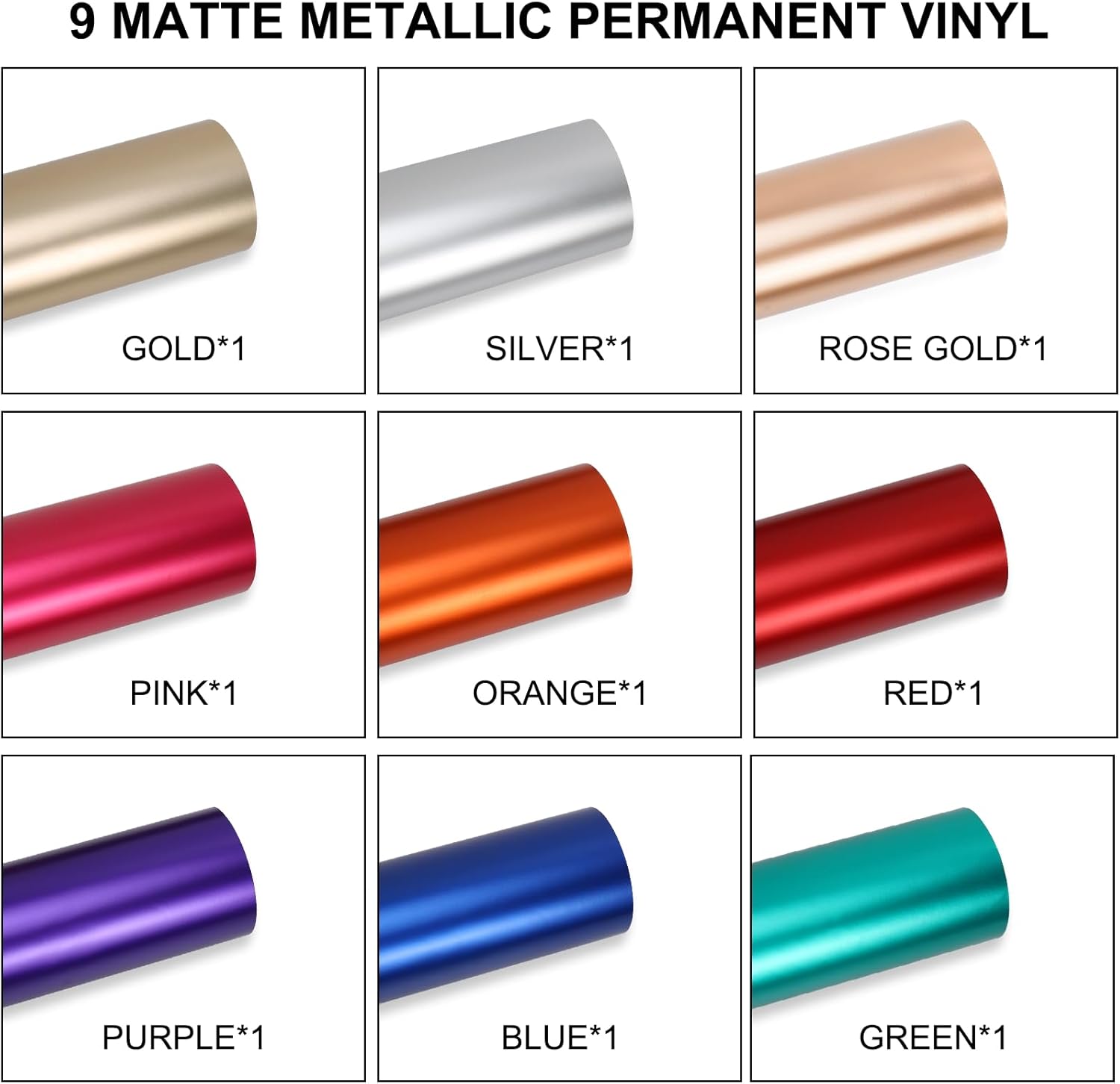 Matte Metallic Vinyl Permanent, 9 Sheets 12″x12″ Metallic Vinyl Matte Finish Multi-Color Pack, Permanent Vinyl for Home Décor, Party Decoration, DIY Crafts