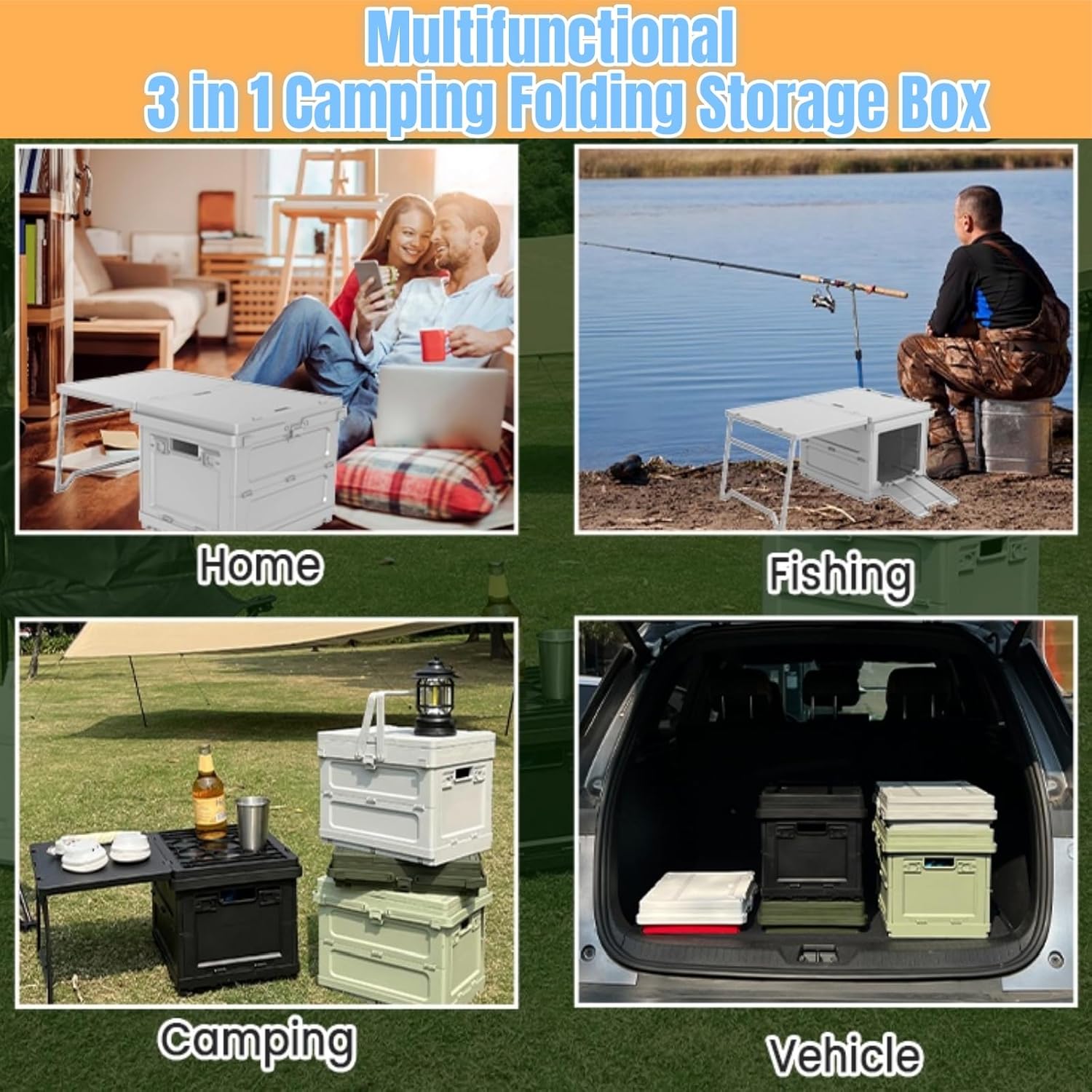 Multi-Function 3-in-1 Camping Companion: This is not an ordinary storage box. It is a deformable outdoor storage box doubles that can be easily switched between a durable storage box and a stable camping table. Designed for hassle-free outdoor adventures, Fast folding and assembly, eliminating the need to carry separate furniture. Perfect for camping trips, backyard BBQs, or beach outings, it maximizes space efficiency while keeping your essentials organized and within reach.