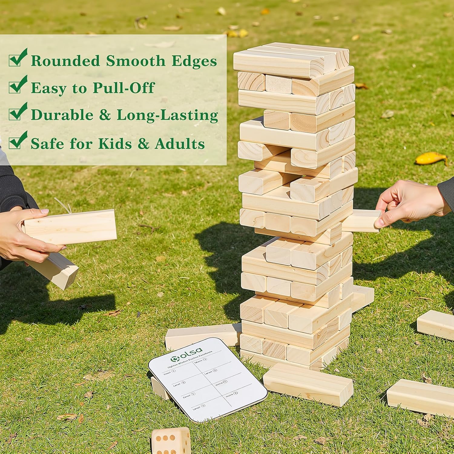 Olsa Giant Tumble Tower 57PCS Wooden Block Stacking Yard Games with Carrying Bag Classic Indoor & Outdoor Game for Adults and Family Party Games for Backyard Lawn Beach Camping (Over 4.2 Ft)
