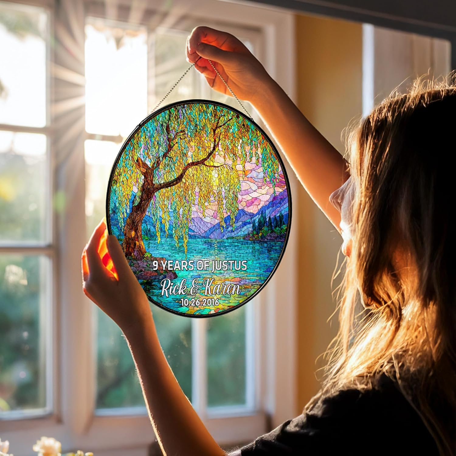 Personalized 9th Wedding Anniversary Pottery Anniversary Suncatcher – Stained Glass Tree of Life Window Hanging for Couple Wife Husband Friend Home Decor Keepsake 9 Years Willow Milestone Celebration