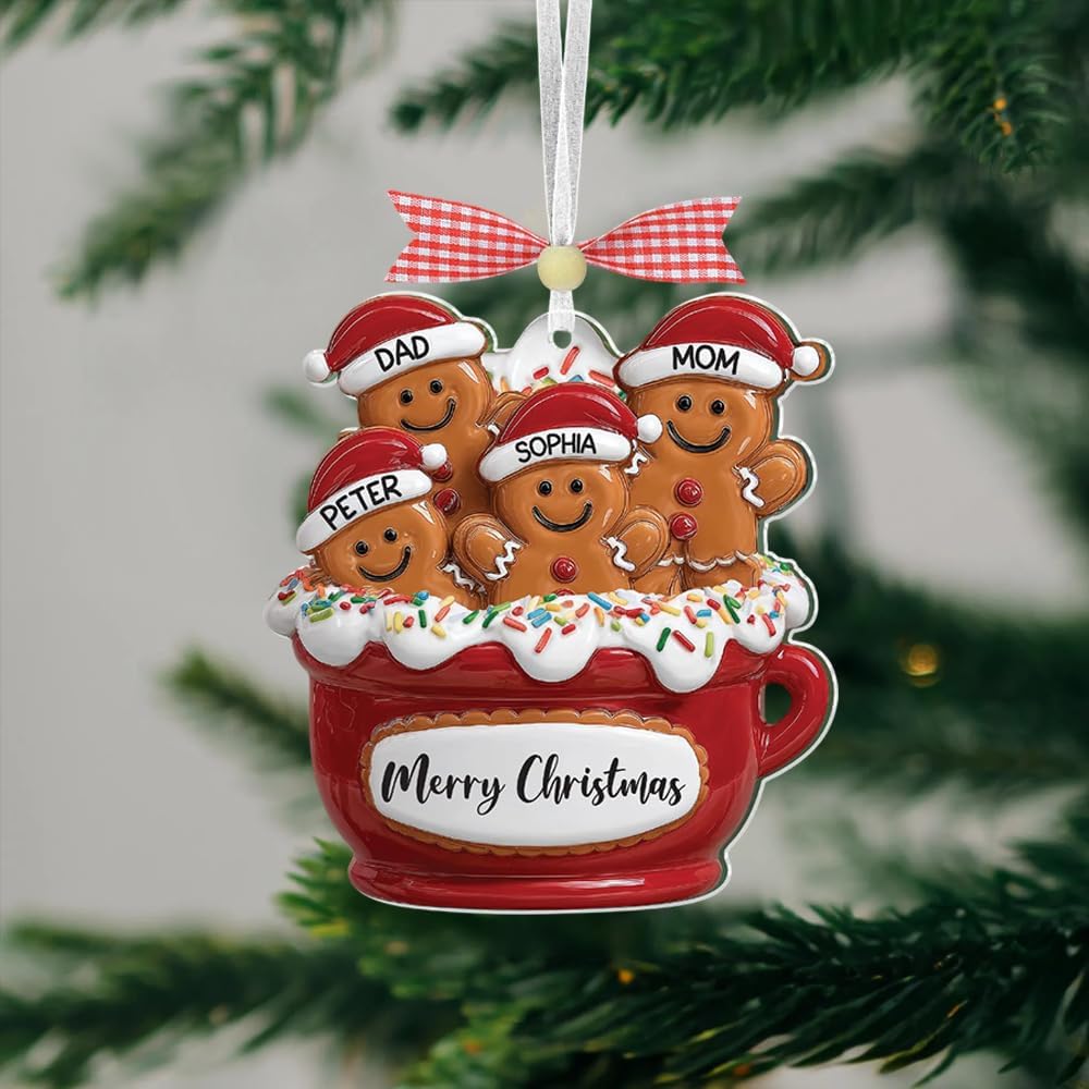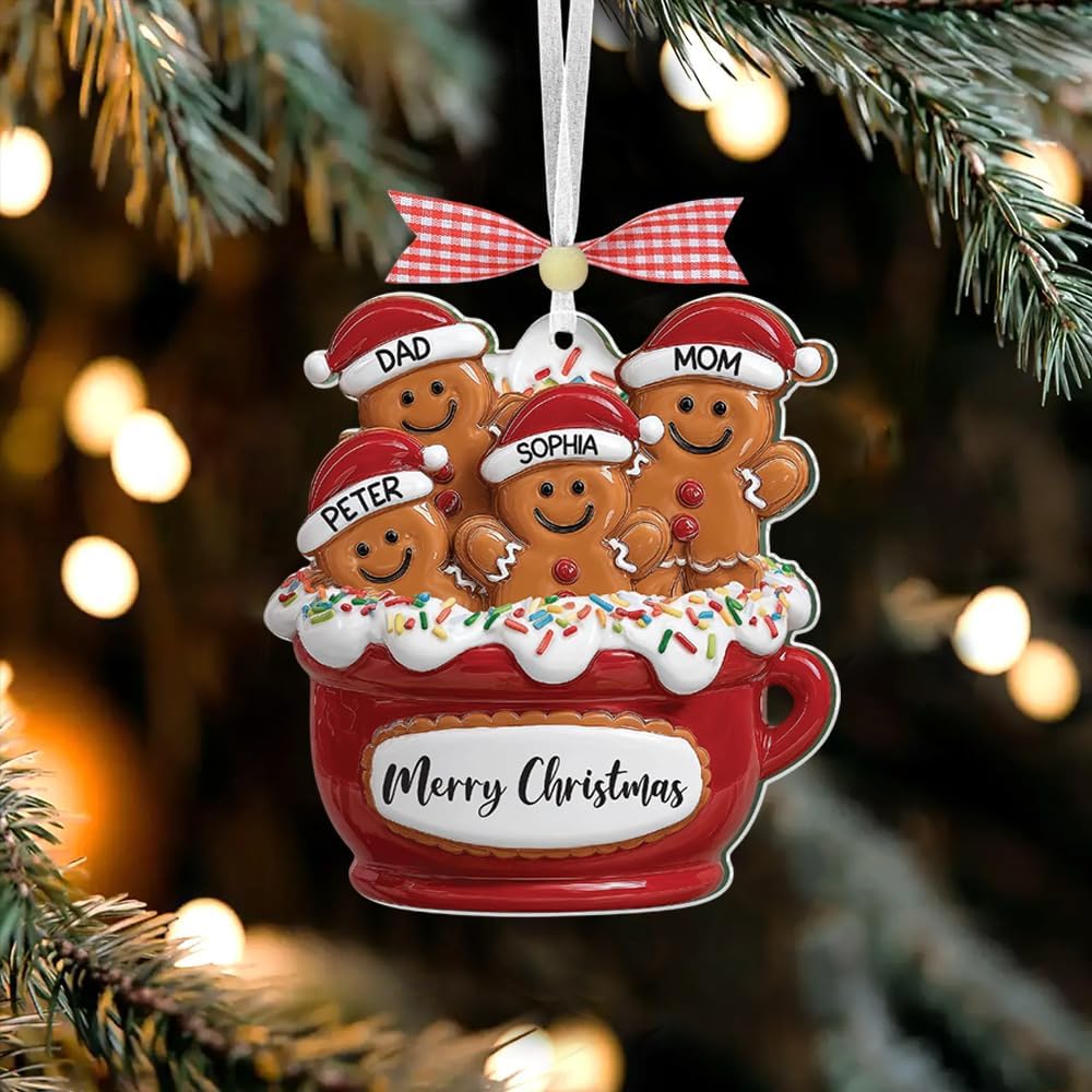 GINGERBREAD FAMILY DESIGN: Features cute gingerbread-style characters representing your family, adding charm to your Christmas tree decorations.