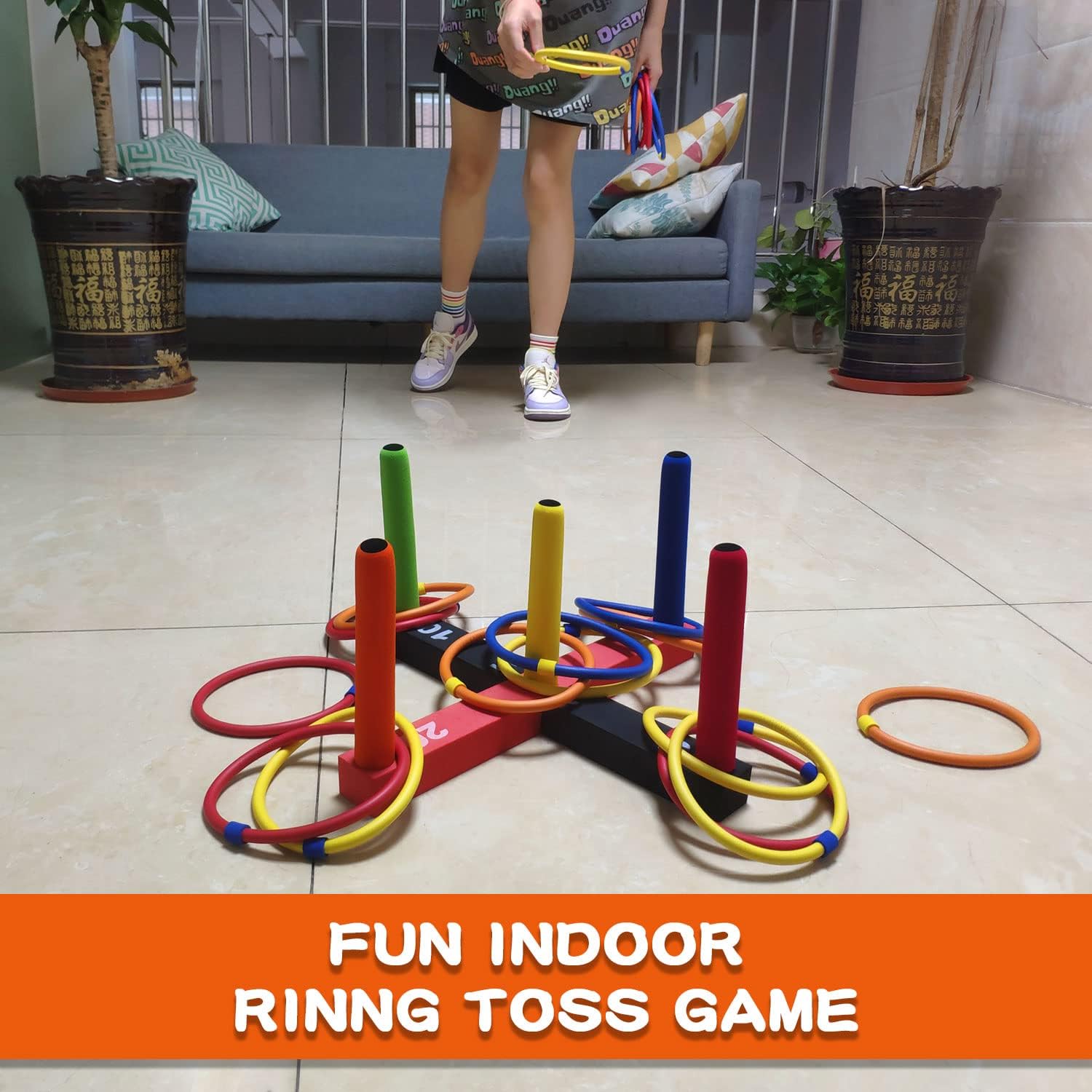 ☀Soft Foam, Safe for Kids: Ring toss for kids is made of soft foam to keep kids safe when playing, never worry about your kids getting hit by a hard rings and let your kids enjoy ring toss game safely!