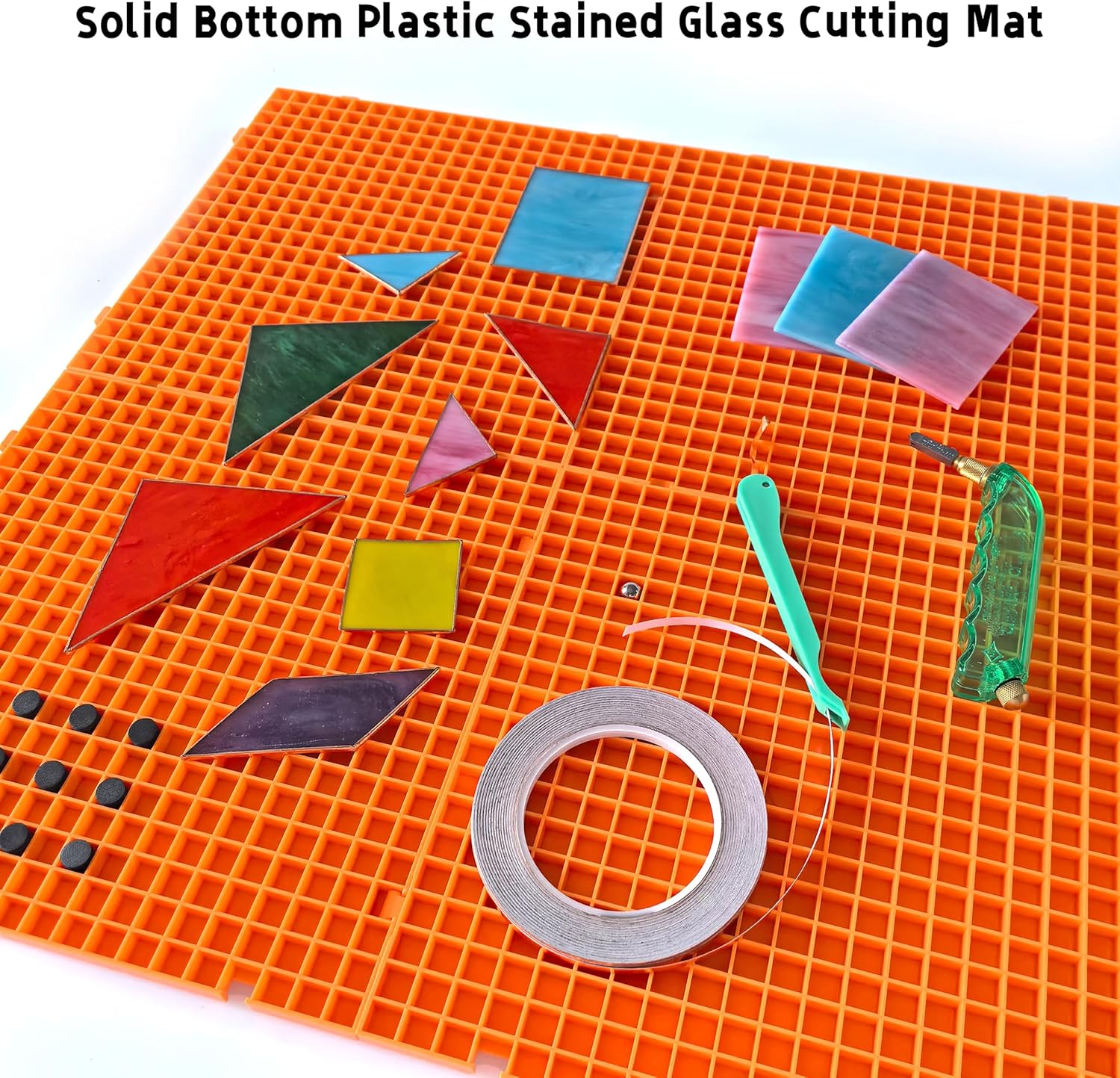 Stained Glass Cutting Mat, Solid Bottom Plastic Grid, Stained Glass Tools and Supplies, Orange, 4 Pack