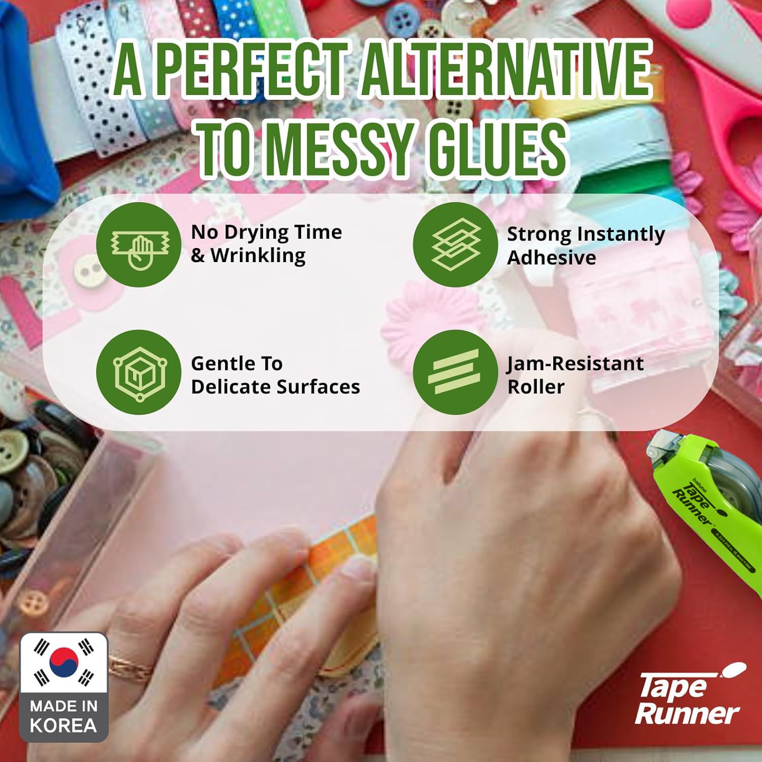 TAPE RUNNER – Double Sided Adhesive with Dispenser Roller Included – Acid Free, Sticky, Transparent – Ideal for Scrapbooking, Crafts & More – Retractable (315 inches per Cartridge), 5 Cartridges